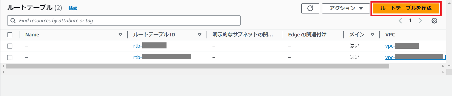 デフォルトで2つのルートテーブルが存在していますが、こちらは今回は使用しませんので、無視しましょう。