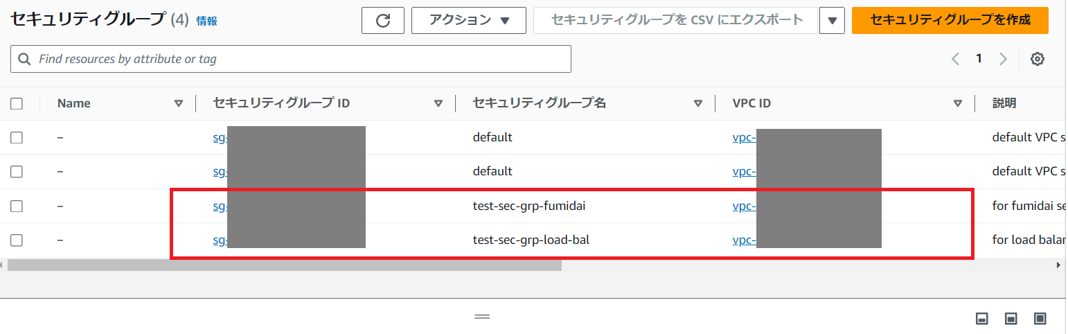 同じように、「ロードバランサー用」のセキュリティグループも作成しておきましょう。後で使うことになるので。