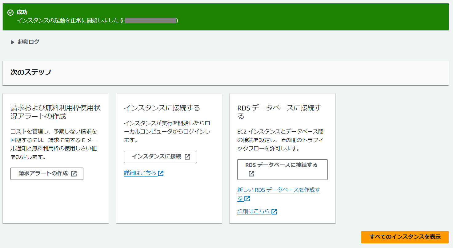 特にエラーがなければ、これでインスタンスが起動されました。