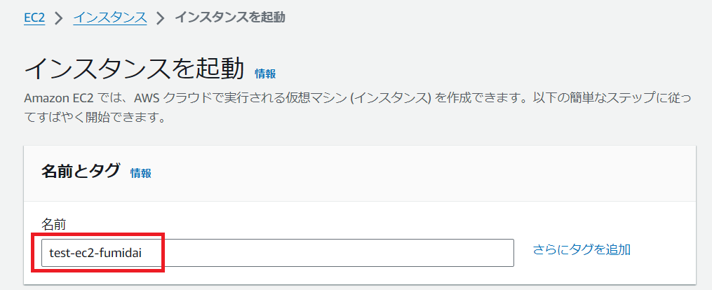 今回は「test-ec2-fumidai」とします。