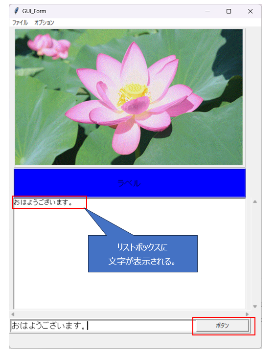 こんな感じで、入力ボックスの文字列がリストボックスに転記されます。