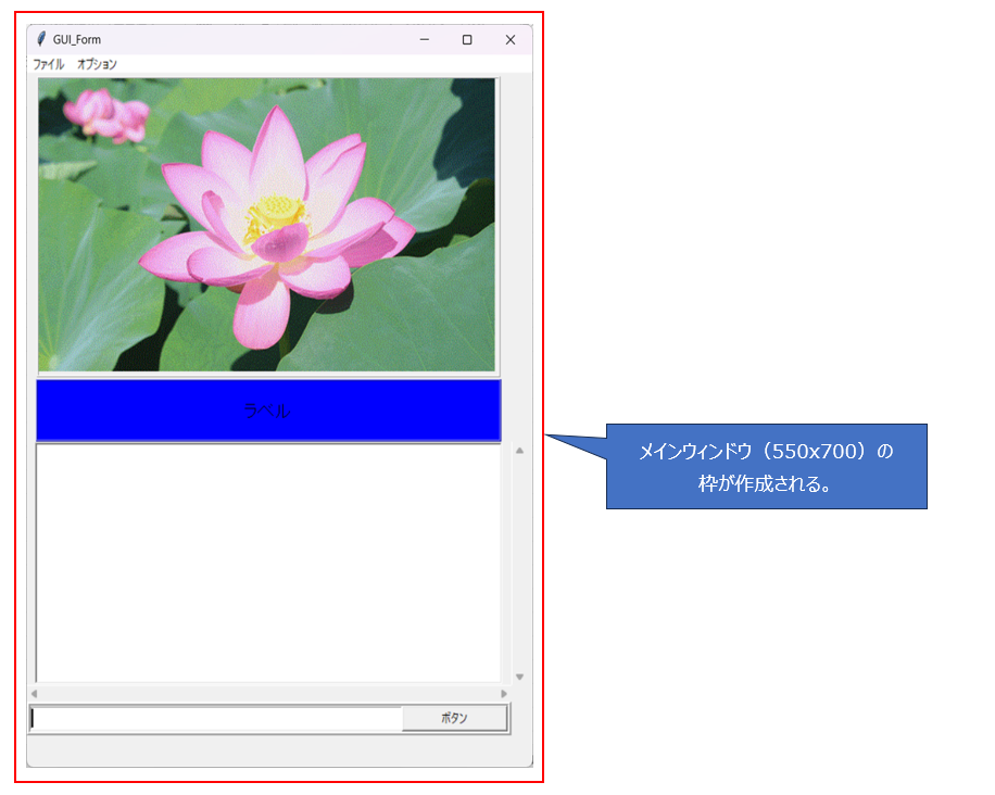 ここまでの④の実装で、以下のようなウィンドウが作成されます。
