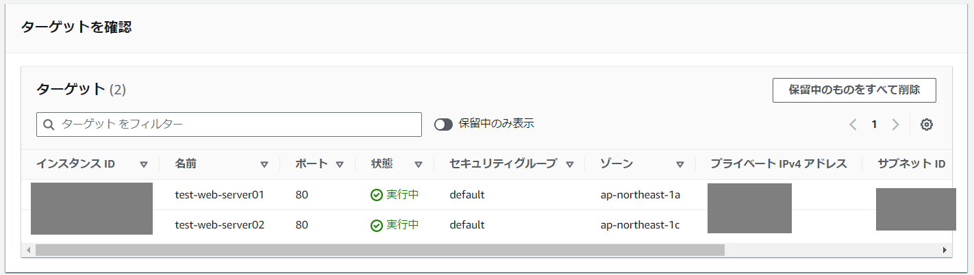 クリック後は「ターゲットを確認」の欄にチェックしたインスタンスが追加されます。