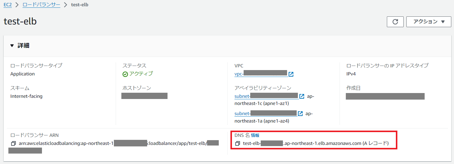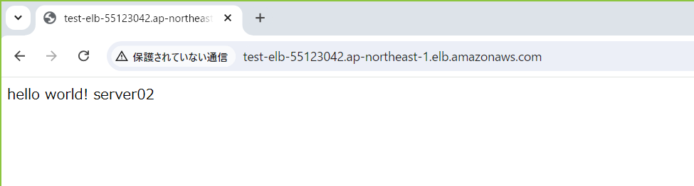 ルーティングが完了したら、作成したロードバランサーのDSN名をコピーし、ブラウザでアクセスしてみて下さい。