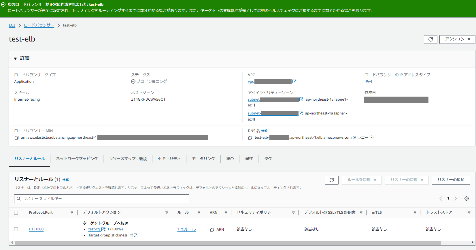このような画面が表示されたら、ロードバランサーの作成成功です。
