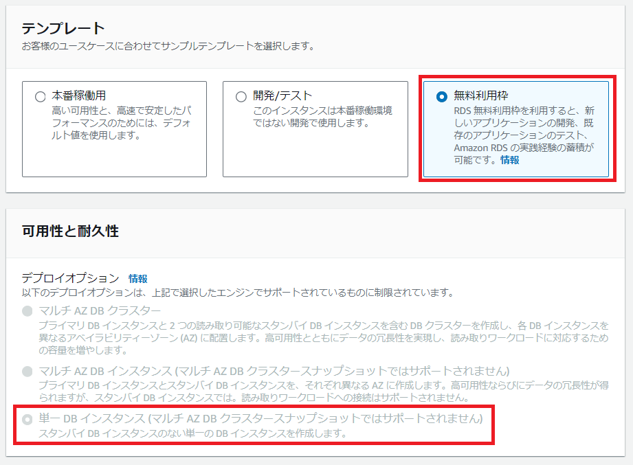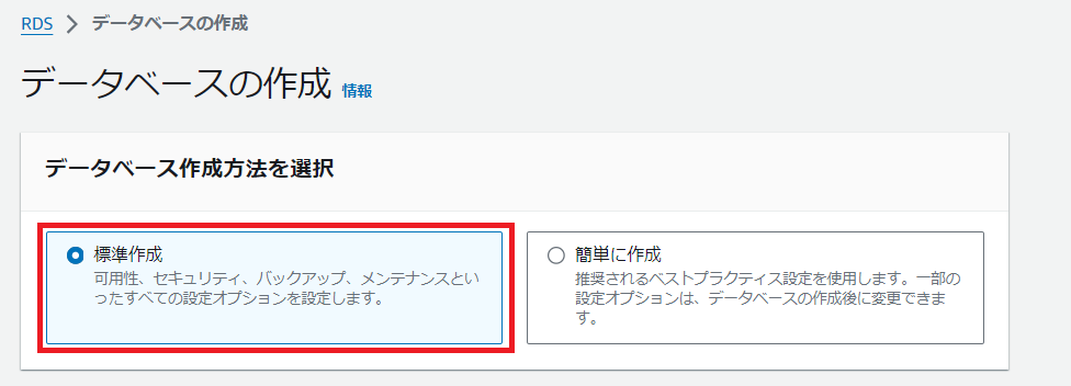 因みに、RDSではマルチAZという機能があり、自動的に複数のアベイラビリティゾーンにデータベースを作成し、耐障害性を高めることが可能です。