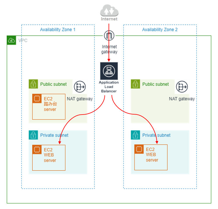 一応、前提としてVPC上の複数のアベイラビリティゾーンにサブネットを配置し、そこでEC2を起動させているものとします。