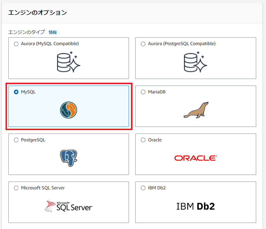 RDSでは、MySQLやOracle、PostgreSQLといったRDB製品がDBエンジンとして選択可能です。